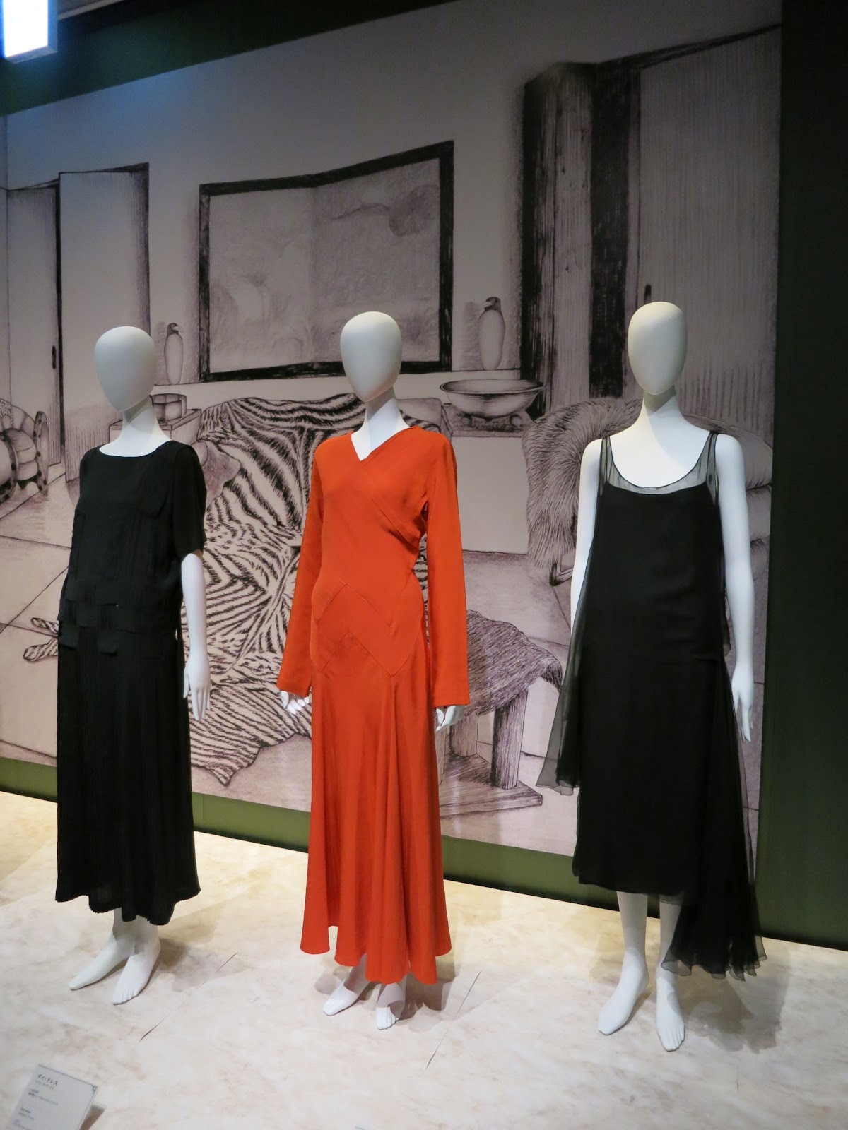会場には、ガブリエル・シャネルやジャンヌ・ランヴァン、マドレーヌ・ヴィオネの衣装が、アール・デコを演出した空間にきらびやかに並んでいます。